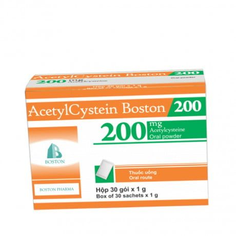 Thành phần Mỗi gói 1g có chứa: Hoạt chất: Acetylcystein 200mg Tá dược: Lactose monohydrat, aspartam, acid ascorbic, màu vàng số 6 lake, mùi cam, silicon dioxid. Chỉ định (Thuốc dùng cho bệnh gì?) Điều trị rối loạn tiết dịch phế quản, đặc biệt là trong các rối loạn phế quản cấp tính như viêm phế quản cấp và bệnh phổi tắc nghẽn mãn tính. Chống chỉ định (Khi nào không nên dùng thuốc này?) Quá mẫn với acetylcystein hay bất kỳ thành phần nào của thuốc. Những người có tiền sử bị hen phế quản. Trẻ em dưới 2 tuổi. Liều dùng, cách dùng Dùng bằng đường uống. Hoà tan thuốc trong khoảng 100ml nước. Liều lượng: Trẻ em từ 2-7 tuổi: 1 gói/lần x 2 lần/ngày. Trẻ em trên 7 tuổi và người lớn: 1 gói/lần x 3 lần/ngày. Tác dụng phụ – Thường gặp: Tiêu hóa: Buồn nôn, nôn. Tim mạch: Đỏ bừng, phù, tim đập nhanh. – Ít gặp: Thần kinh: Buồn ngủ, nhức đầu, ù tai. Hô hấp: Viêm miệng, chảy nước mũi nhiều, ran ngáy. Da: Phát ban, mày đay. – Hiếm gặp: Toàn thân: Co thắt phế quản kèm phản ứng dạng phản vệ toàn thân, sốt, rét run. QUÁ LIỀU VÀ XỬ TRÍ Quá liều: Acetylcystein có các triệu chứng quá liều tương tự như triệu chứng của phản ứng phản vệ, nhưng nặng hơn nhiều, đặc biệt là giảm huyết áp. Các triệu chứng khác gồm suy hô hấp, tan máu, đông máu rải rác nội mạch, suy thận. Điều trị: Điều trị hỗ trợ theo triệu chứng. Thận trọng (Những lưu ý khi dùng thuốc) Các tình trạng cần thận trọng khi dùng thuốc: – Những bệnh nhân hen suyễn cần được theo dõi chặt chẽ khi điều trị với acetylcystein; nếu co thắt phế quản xảy ra, cần phải dùng thuốc giãn phế quản dạng khí dung. Nếu cơn co thắt phế quản vẫn tiến triển, ngưng dùng acetylcystein lập tức. – Tăng thể tích dịch tiết loãng của phế quản có thể phát triển sau khi dùng acetylcystein, nếu ho cũng không thể thích hợp để duy trì đường thông khí trong quá trình điều trị với acetylcystein, cần sử dụng dụng cụ hút dịch cơ học hoặc đặt ống nội khí quản. – Cần thận trọng đối với những bệnh nhân có tiền sử bệnh loét đường tiêu hóa vì các thuốc làm tiêu đờm có nguy cơ phá vỡ hàng rào niêm mạc bảo vệ của dạ dày. – Cần thận trọng khi dùng thuốc vì thuốc có chứa tá dược màu vàng số 6 nên có thể gây ra các phản ứng dị ứng. – Do thuốc chứa aspartam nên có thể gây ra phản ứng bất lợi cho người bị phenylceton niệu. – Không nên sử dụng cho bệnh nhân có vấn đề về di truyền hiếm gặp không dung nạp galactose, thiếu hụt lactase hoặc kém hấp thu glucose-galactose. PHỤ NỮ CÓ THAI VÀ CHO CON BÚ Phụ nữ có thai: Đến nay chưa có nghiên cứu đầy đủ và có kiểm soát về việc sử dụng acetylcystein ở phụ nữ có thai, chỉ dùng thuốc trong thời kỳ mang thai khi thật sự cần thiết. Phụ nữ cho con bú: Không có dữ liệu về việc bài tiết của acetylcystein qua sữa mẹ ở người. Tuy nhiên, acetylcystein có độc tính thấp và nguy cơ tiềm ẩn xuất hiện trên trẻ em không đáng kể khi điều trị nên thuốc có thể dùng cho phụ nữ cho con bú. LÁI XE VÀ VẬN HÀNH MÁY MÓC Thuốc có thể gây buồn ngủ và nhức đầu nên cần thận trọng khi sử dụng cho người vận hành máy móc, đang lái tàu xe, người làm việc trên cao và các trường hợp khác. Tương tác thuốc (Những lưu ý khi dùng chung thuốc với thực phẩm hoặc thuốc khác) Acetylcystein là một chất khử và tương kỵ với các chất oxy hóa. Không được dùng đồng thời các thuốc ho khác hoặc bất cứ thuốc nào làm giảm bài tiết phế quản trong thời gian điều trị bằng acetylcystein.